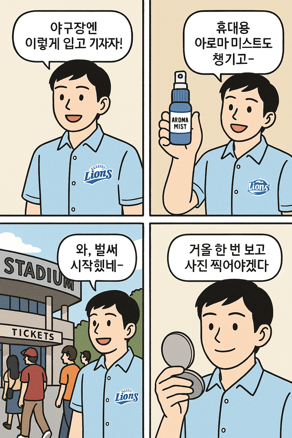 - 생활용품 : 휴대용 시트러스 아로마 미스트 → 야구장 특유의 습도·냄새 완화 + 기분 전환